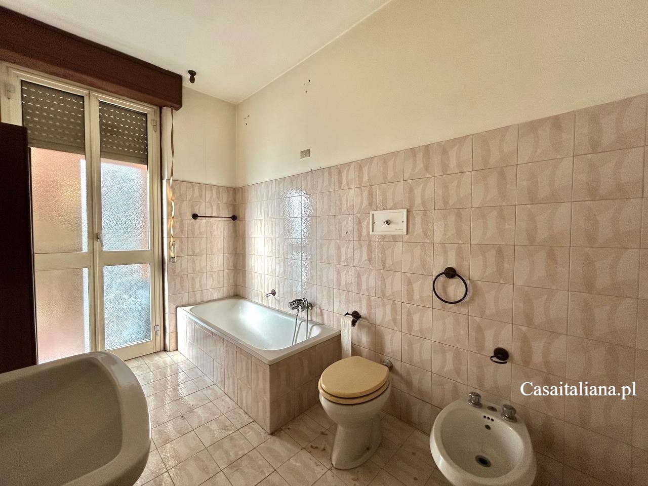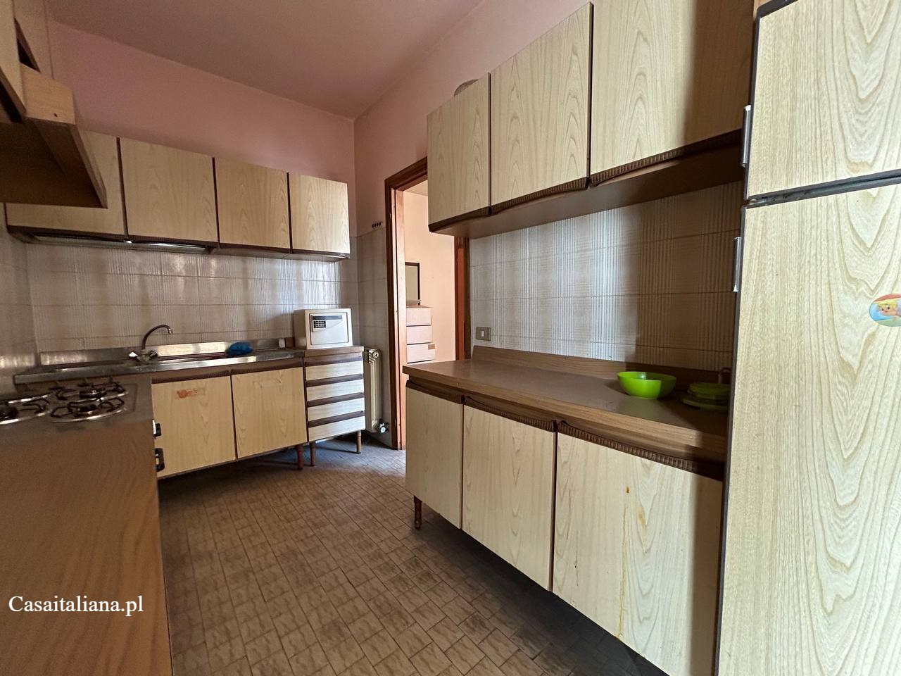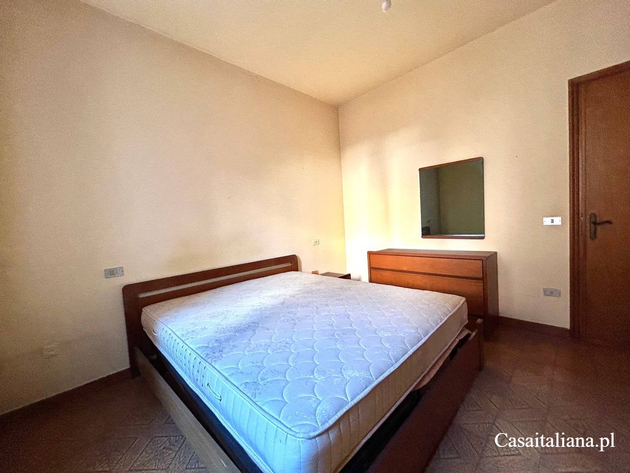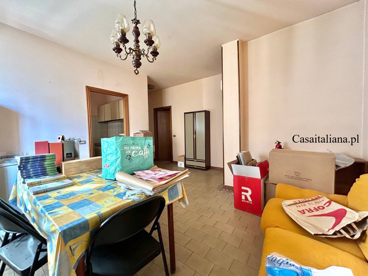 Po wejściu na posesję wita nas część dzienna z jasnym salonem i oddzielną kuchnią z bezpośrednim wyjściem na główny taras. Przechodząc do części sypialnej, znajdujemy sypialnię dwuosobową oraz sypialnię jednoosobową z dostępem do balkonu oraz łazienkę z oknem i wanną. Nieruchomość nie posiada własnego garażu, ale znajduje się naprzeciwko Piazzale Marconi, przy którym znajduje się wiele miejsc parkingowych. Dodatkowym atutem nieruchomości jest dobre połączenie z lotniskiem oraz lokalizacja blisko centrum miasteczka, które z kolei jest mocno turystyczne, więc prezentowany lokal nadaje się pod wynajem krótkoterminowy.