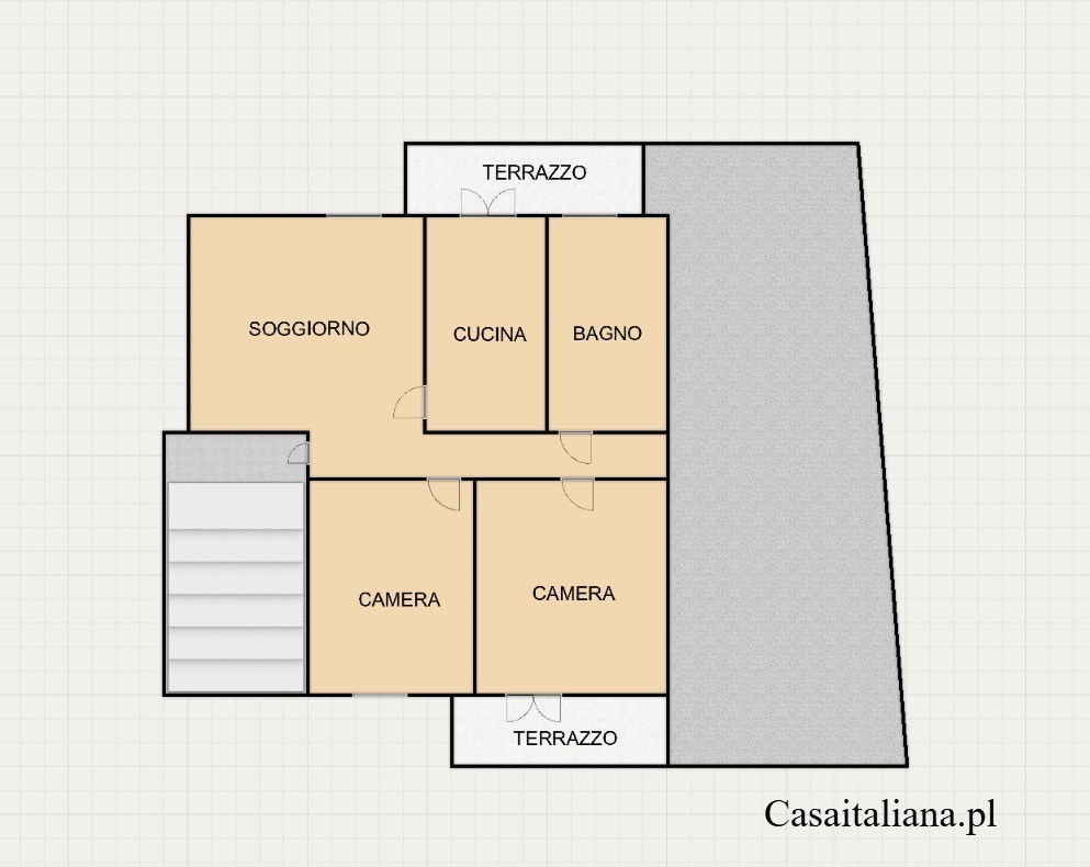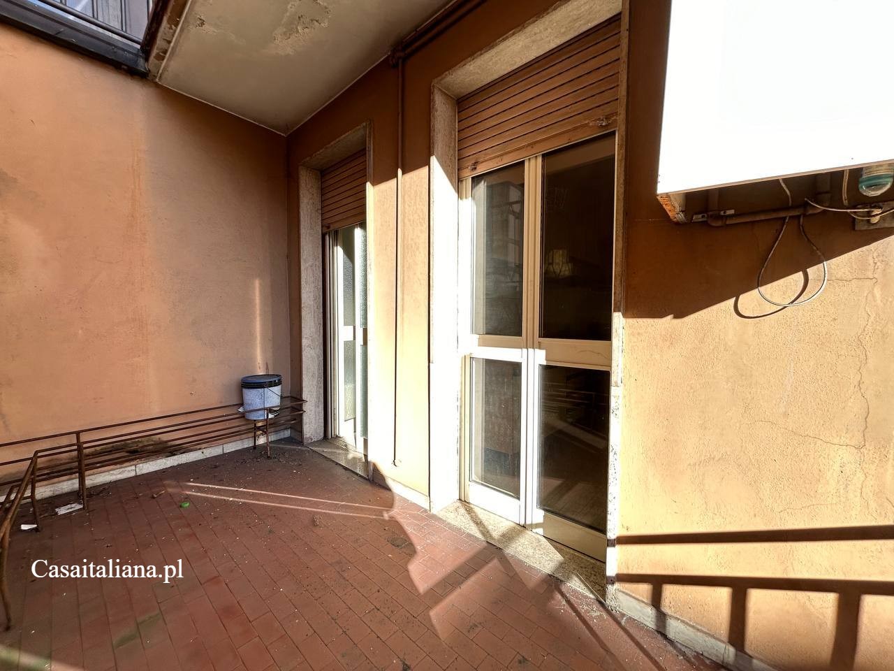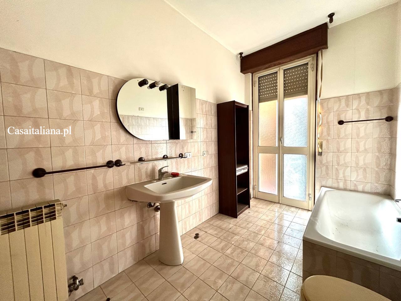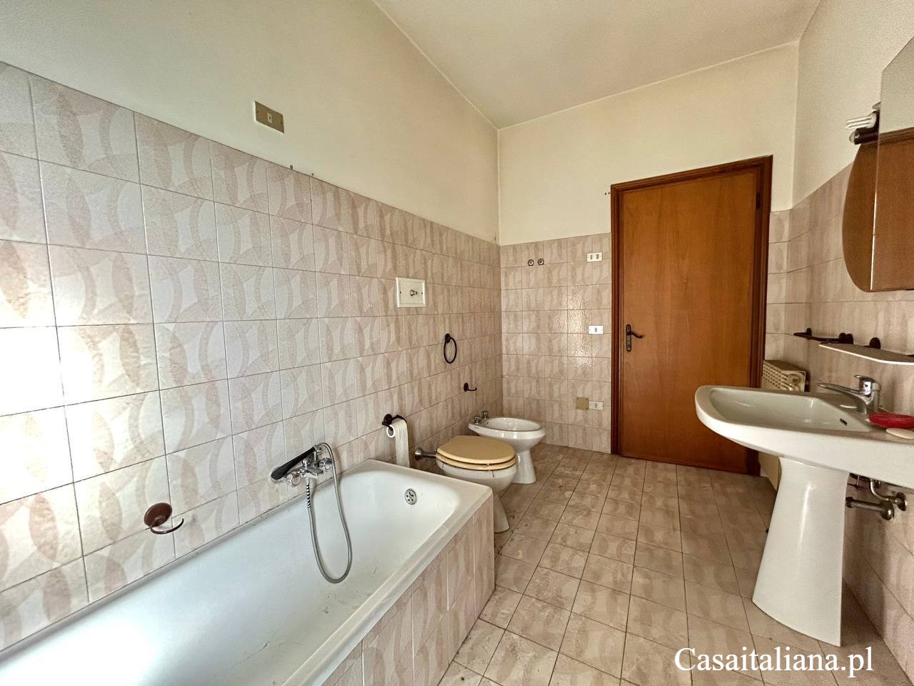 Po wejściu na posesję wita nas część dzienna z jasnym salonem i oddzielną kuchnią z bezpośrednim wyjściem na główny taras. Przechodząc do części sypialnej, znajdujemy sypialnię dwuosobową oraz sypialnię jednoosobową z dostępem do balkonu oraz łazienkę z oknem i wanną. Nieruchomość nie posiada własnego garażu, ale znajduje się naprzeciwko Piazzale Marconi, przy którym znajduje się wiele miejsc parkingowych. Dodatkowym atutem nieruchomości jest dobre połączenie z lotniskiem oraz lokalizacja blisko centrum miasteczka, które z kolei jest mocno turystyczne, więc prezentowany lokal nadaje się pod wynajem krótkoterminowy.